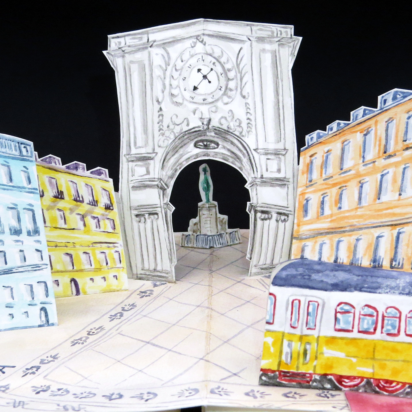 Shortly after I moved to Lisbon I wanted to pay homage to the city. It inspired me to combine my love for urban sketching and pop-ups in one project. I wanted to highlight the places I’ve seen and make them come alive through my pop-ups. It’s a visual 3D pocket guide for sights to see in and around Lisbon.